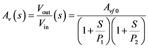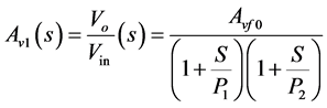 The proposed LD has many poles and zeros, but two first poles or zeros are important in the frequency response of the op-amp. Figure 9 is used for calculating frequency response of the LD. From Figure 9, the transfer function of closed loop part of the LD (Av1) is: