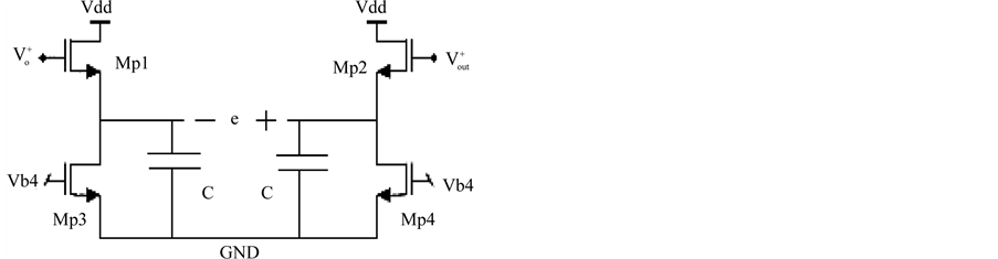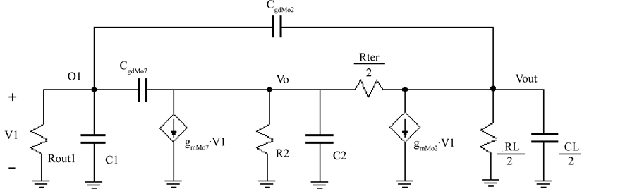 are the dc-gain of the first stage and output stage, respectively. The Polysilicon resistance is used to implement circuit resistors because it is more linear than others (p-well or n-well resistances). Because of using fully differential architecture, common-mode disturbances, such as substrate or power supply noise are cancelled to a great extent. In addition, even order harmonics are also eliminated. In this work, two separate common-mode feedback circuits are used in the two stages due to fast transient, instead of using an overall common-mode feedback which is usually slow. This helps to achieve a much reduced distortion [5] .