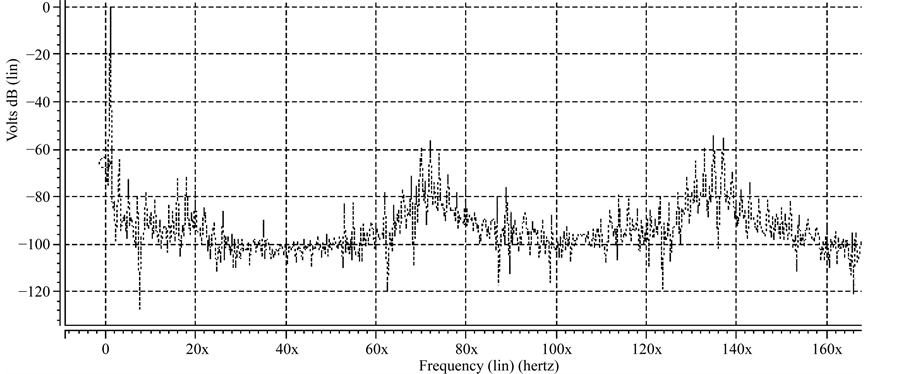 Figure 18. Effect of the supply noise on the output spectrum of the LD while driving a 75 W and CL = 10 pF load at 1 MHz and 3.2Vp-p amplitude. (a) Without compensator capacitors in the circuit of Figure 10. (b) Output spectrum with compensator capacitors.