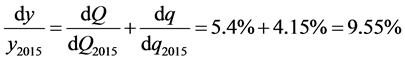 由于钢铁、水泥、煤炭、电力等在37年间增加了较多,不妨认为这37年间我国产品产量增加了7倍(准确数据应国家统计局提供),即年均增加5.4%。那么,可以计算出我国2015年的产品平均质量水平提高为
