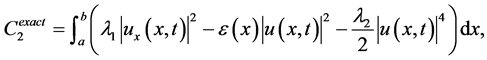 Table 2.The real and imaginary parts of the numerical and exact solutions for Example 1 with
