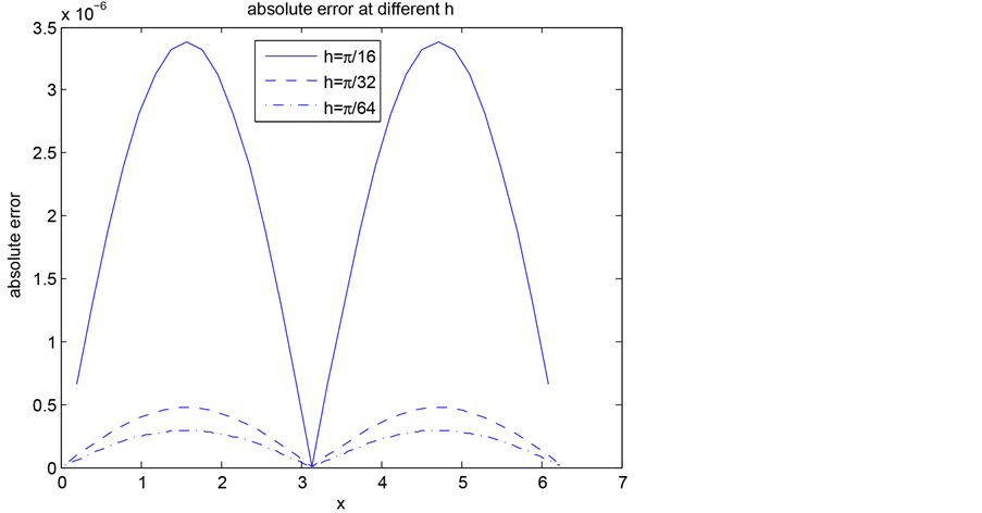 are shown in Figure 1, it can be seen that the absolute errors becomes smaller as decreasing h.