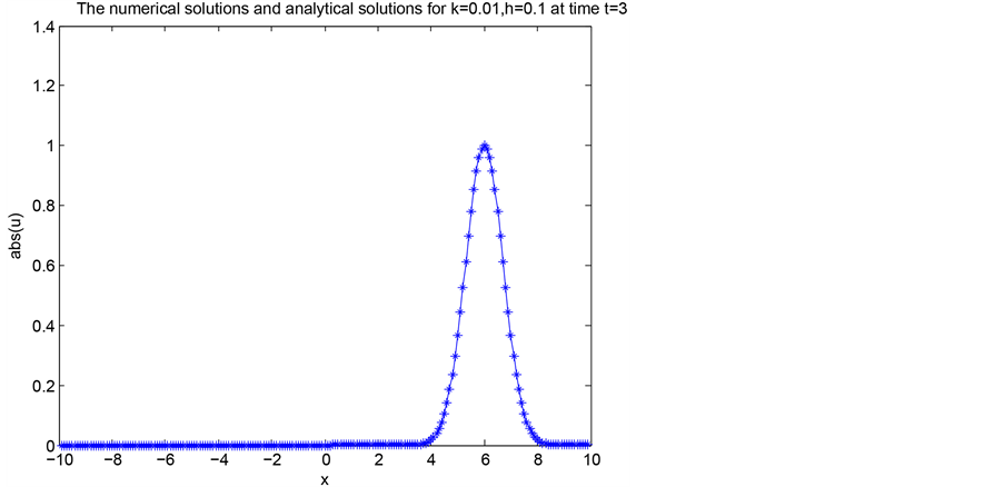 The numerical solutions at various times are given in Figure 2. The numerical solutions and analytical solutions at time