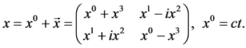 are isomorphic algebras on the real field, the sum and the product of matrices are familiar in quantum physics. This matrix representation identifies complex numbers and scalar matrices in the Pauli algebra. With this identification we write the x of (2.1) as