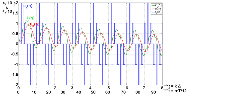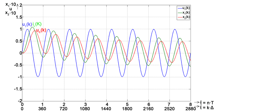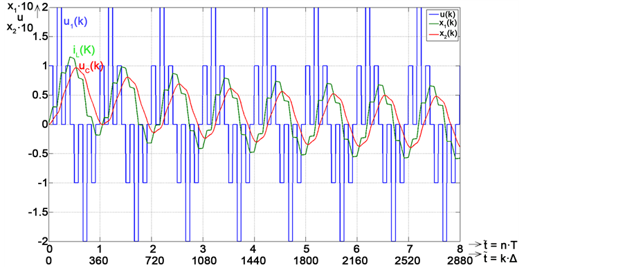 Behaviour of the system under load switched-on during 8 periods, i.e. 2880 of k is shown in Figure 9.