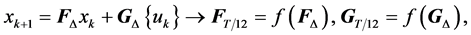 Discrete form of state space model of the investigated system with the step of impulse switching function can be obtained directly from the impulse switching functions generated above: