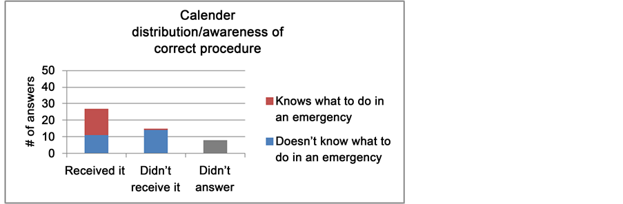 Among all respondents who receive the calendar, 16 claim to know what to do in an emergency situation. Among the 15 participants who did not receive the calendar, only one claimed to know how to proceed in case of emergency. These data show that the calendar contributes to the dissemination of information (Figure 1).