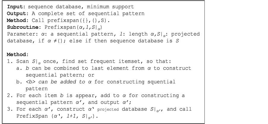 The pseudocode of PrefixSpan algorithm is shown in Figure 1 [7]