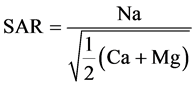 The Sodium Adsorption Ratio (SAR) was calculated by the following equation given by [36] as: