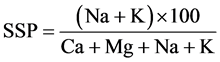 Soluble Sodium Percentage (SSP) was calculated by the following equation [37] :