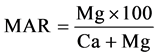 Magnesium Adsorption Ratio (MAR) was calculated by the equation [40] as: