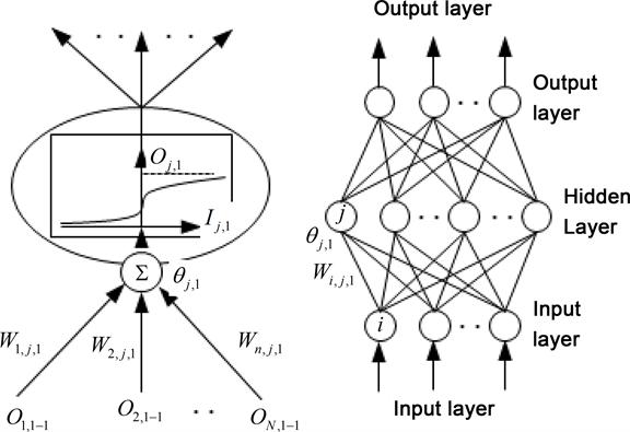 While various ANN techniques can be used in this approach, a multilayer feed-forward neural network seems to be one of the most appropriate options because of its simplicity and flexibility [16] [17] . As shown in Figure 11, a neural network consists of N neurons, which are each connected to the neurons of the adjacent layers. A threshold value θ,l is associated with each neuron. The output of each neuron is determined by the level of the input signal in relation to the threshold value. These signals are modified by the connection weights Wi,j,c (also called synaptic strengths) between the neurons.