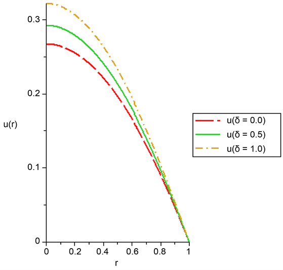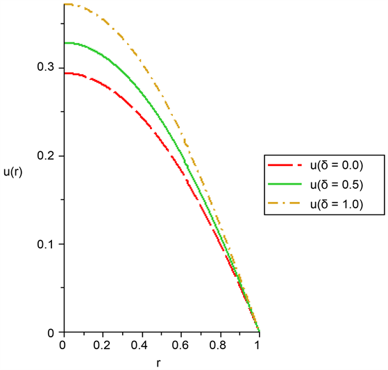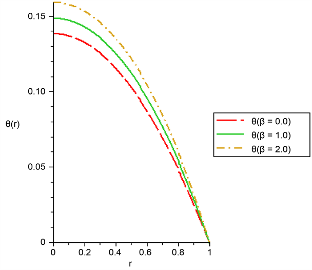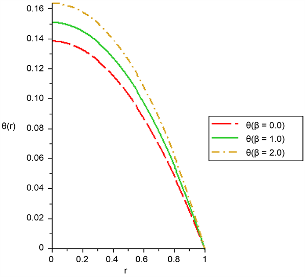The maximum temperature appeared at the centre of the cylindrical pipe and it decreases towards the boundary of the pipe. This result is in line with [14] [22] .