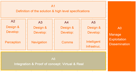 ・ Activity 6: Implementation and testing of the subsystems developed in activities A2-A5 in all use cases: Automated electric bus for passenger transport at the Málaga port and smart vehicles for infrastructure maintenance.