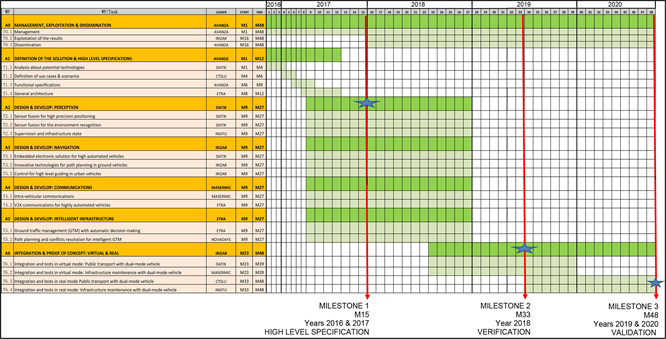 It may thus be concluded that AutoMOST focuses on the use of many of the functions already existing for automated vehicles up to the present, avoiding additional efforts with regard to systems already tested and validated. AutoMOST, however, seeks to go beyond by developing technologies that enable automated and “dual mode” driving under real traffic conditions, interacting safely with the dynamic urban environment and with expert drivers to validate interaction between different automation levels and thus allow for safe and efficient deployment.