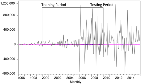 The data were divided in to two periods: Training Period from January 1996 to December 2006 and Testing Period from January 2007 to December 2015.