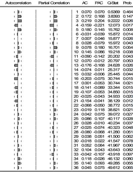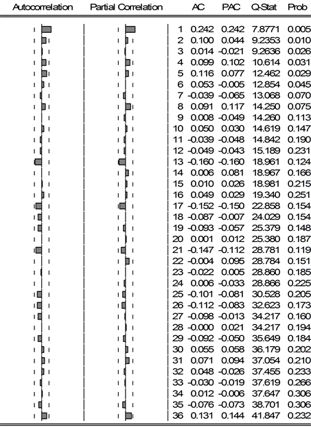 Figure 4. Correlogram test of training period on Nigeria stock market returns.
