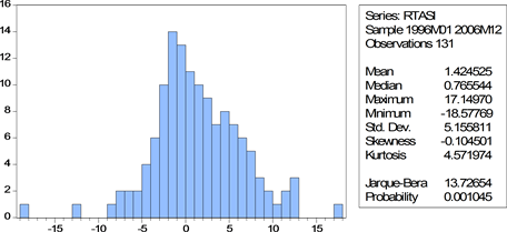 Some descriptive statistics for the monthly return of the Nigeria Stock Market are presented in Table 1.