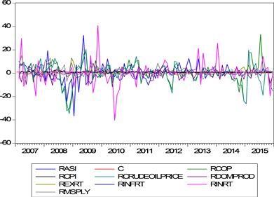 Figure 1. Monthly rate of the Nigeria stock market returns from January 1996 to December 2015.