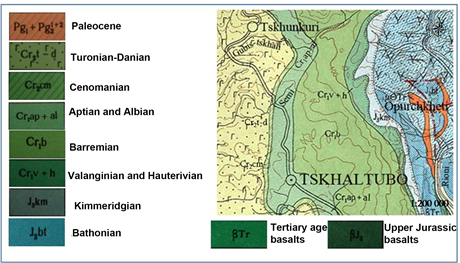 Figure 2. Tskaltubo limestone massif’s geological map.
