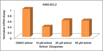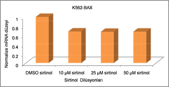 Bax is an apoptotic pathway and Bcl-2 is an anti-apoptotic factor. The increase in Bax/Bcl2 ratio is considered to be an important indicator for apoptosis. Caspase 3 is an important mediator of apoptosis. It has been shown in previous studies that Sirtinol apoptosed Jurkat and that Caspase3 was involved in this process [6] . However, the effect on Bax and Bcl2 was not studied. In K-562 cells, there is no information about the effect and mechanism of apoptosis in Sirtinol. The results obtained show that Sirtinol is apoptotic in Jurkat cells consistent with the literature, including Bax, Bcl2 and Caspase3. In the chronic myeloid cell line K562, Sirtinol induces apoptosis by inducing its effect at lower dilutions than Jurkat. Similar to Jurkat, we can say that the pathway including Bax, Bcl2 and Caspase3 is activated and leads to apoptosis.