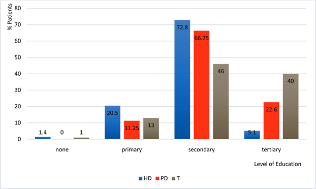 Figure 2. Level of education completed or completing and mode of renal replacement therapy.