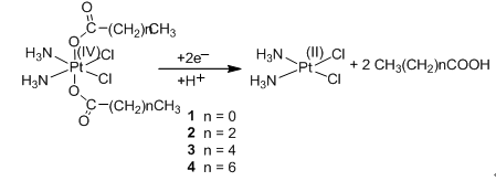Zanellato, I., Bonarrigo, I., Colangelo, D., Gabano, E., Ravera, M., Alessio, M. and Osella, D. (2014) Biological Activity of a Series of Cisplatin-Based Aliphatic Bis(Carboxylato) Pt(IV) Prodrugs: How Long the Organic Chain Should Be? Journal of Inorganic Biochemistry, 140, 219-227. [CrossRef] [PubMed]