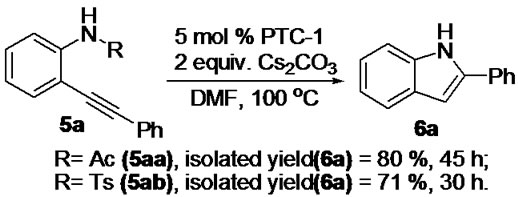 When the substrates 5a was investigated, to our surprising, 2-phenyl-1H-indole was obtained in good yield (Scheme 2).