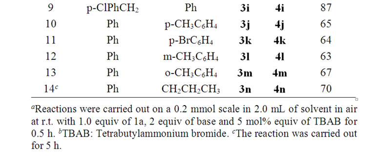 Table 4. Cyclization reaction catalyzed by TBABa,b.