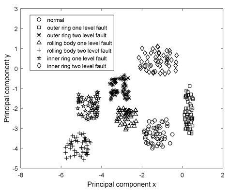 The fault diagnosis method of rolling bearing based on CAPSO-DAEN is to solve the problem of multiple classification of faults. It is necessary to diagnose 7 kinds of fault problems of rolling bearings. The diagnosis results can be divided into 7 types, which are normal, outer ring one level fault, outer ring two level fault, rolling body one level fault, rolling body two level fault, inner ring one level fault and inner ring two level fault. As shown in Table 1, the fault states of rolling bearings are coded.