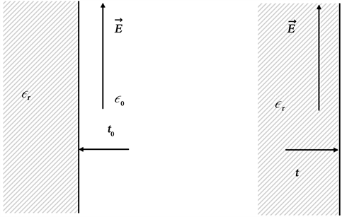 Figure 3. Compression t0 and t at the interface in the case that the electrostatic field line is parallel to a surface.
