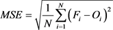 The MSE calculation using the mathematical equation: