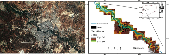 The area of Orontes basin extended around Hama city (northwest to the southwest) was chosen as a pilot area 35.05 - 35.20N and 36.85 - 36.67E. The area is characterized by intensive agricultural and industrial activity, and includes the city of Hama and its environs and residential communities in Ghor Al-Assi, Genan Al-Asi, Sreiheen, Al Daheria, Kazo, Shirraaya, Barza, and Khattab (Figure 1).