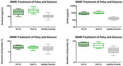 This paper presents a study of the effectiveness of MNRI therapy using neurotransmitter analysis. The aim was to investigate whether the neurotransmitters markers improve as a result of MNRI Reflex Integration treatment modality for individuals with global developmental disorders, cerebral palsy, traumatic brain injury (TBI), acute brain injury (ABI), seizures, ADD/ADHD, and anxiety disorders.