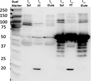 Western Blot was performed and its analysis confirmed that the TbgI2 and TbgI17 recombinant antigens were effectively produced while the Coomassie Brilliant Blue analysis showed that all the two recombinant antigens were of good purity (Figure 1 & Figure 2).