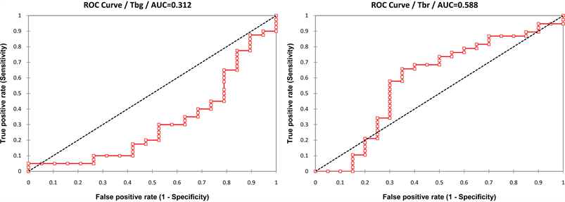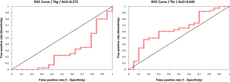 For Tbg, TbgI2 exhibited an AUC of 0.312 while TbgI17 an AUC of 0.272. For Tbr, TbgI2 and TbgI17 exhibited AUCs of 0.588 and 0.645 respectively (Figure 5 and Table 3).