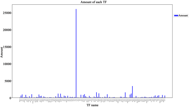 Our dataset comes from the paper of Pouya Kheradpour and Manolis Kellis [8], and we use the exp-regions-motif datafile on this website, which records all TFBRs and their corresponding motifs, for each human chromosome (1 to 22, X and Y). The same transcription factors (TF) can have various binding sites. After we remove TFs without matching motif, there are 71481 lines of data in total, and each line in our dataset contains the information for name of the TF, its binding site, location, and motif instances appearing in this region. In our experiment, we only apply the names of TFs and motifs in the corresponding TFBR. For each TF name and motif name, the mapping scheme, and the motif occurring order on the positive strand of DNA sequence are followed by underscores respectively. To simplify the data, we only reserve the part before the first underscore of these names, based on cell types and motif patterns, and finally we have 244 motif patterns.