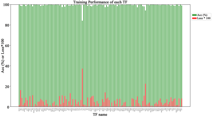 Our CNN model for binary classification can reach weighted average accuracy to 92.7165% for all 122 TFBRs. Although with larger data, the accuracy of our