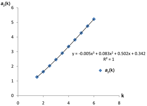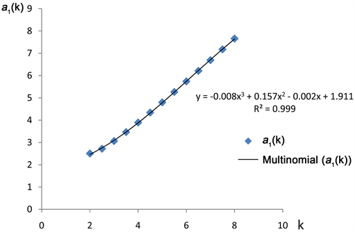 This plotting is given in Figure 1. It was found that a1 (k) is a polynomial function of k. The following relationship was found for k ≤ 8, with R2 = 0.999: