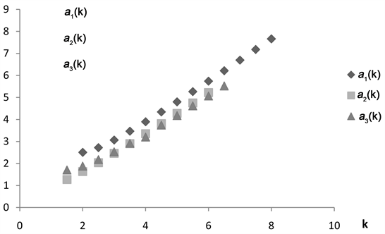 A comparative evolution of a1 (k), a2 (k) and a3 (k) with k is given in Figure 4.