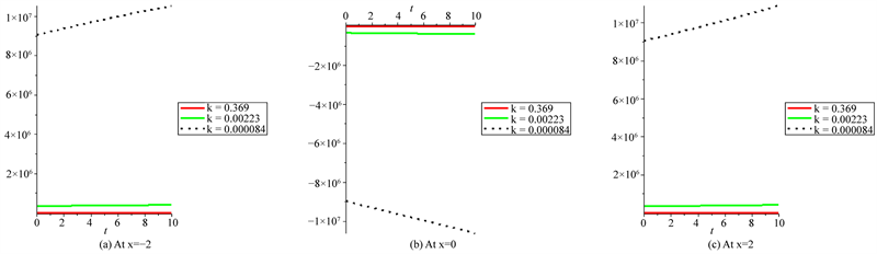 x is considered from −2 to 2 and is measured in meter(m) while t is measured in second(s). All the analysis carried out in this section is done using MAPLE 18. We considered the cases below: