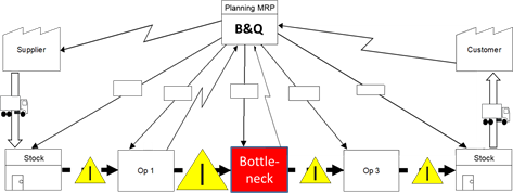 Figure 3. B & Q push manufacturing system characterized by a high WIP (depicted by I-triangles).