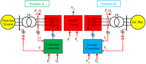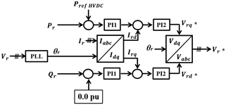 where, Vdc: DC voltage, Cdc: capacitance of smoothing capacitor in the DC link (50,000 μF), Pr: active power of the converter, Pq: active power of the inverter, Vdcn: rated voltage of the HVDC line (250 kV).