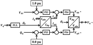 Figure 7 shows control system model of System A side converter that converts from three-phase AC to DC voltage. Also Figure 8 shows control system model of System B side inverter that converts the DC voltage to the three-phase AC. The parameters of PI controllers used in Figure 7 and Figure 8 are shown in Table 3.