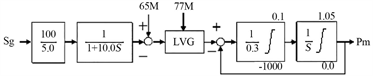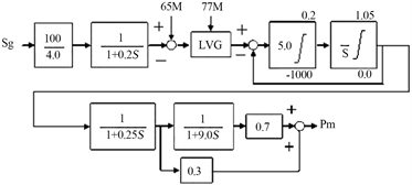 In this study, SG1 and SG3 are operating under load frequency control (LFC) and SG2 is under governor free (GF) operation. Figure 2 and Figure 3 show the thermal governor model used for the thermal power plants (SG1 and SG2) and the hydro governor model used for the hydro power plant (SG3) respectively. The LFC system model is shown in Figure 4, where